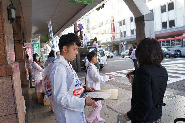 白衣の行動(看護師増員等を要求するの署名活動)が行われました。 (2014/11/7)