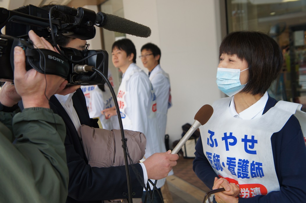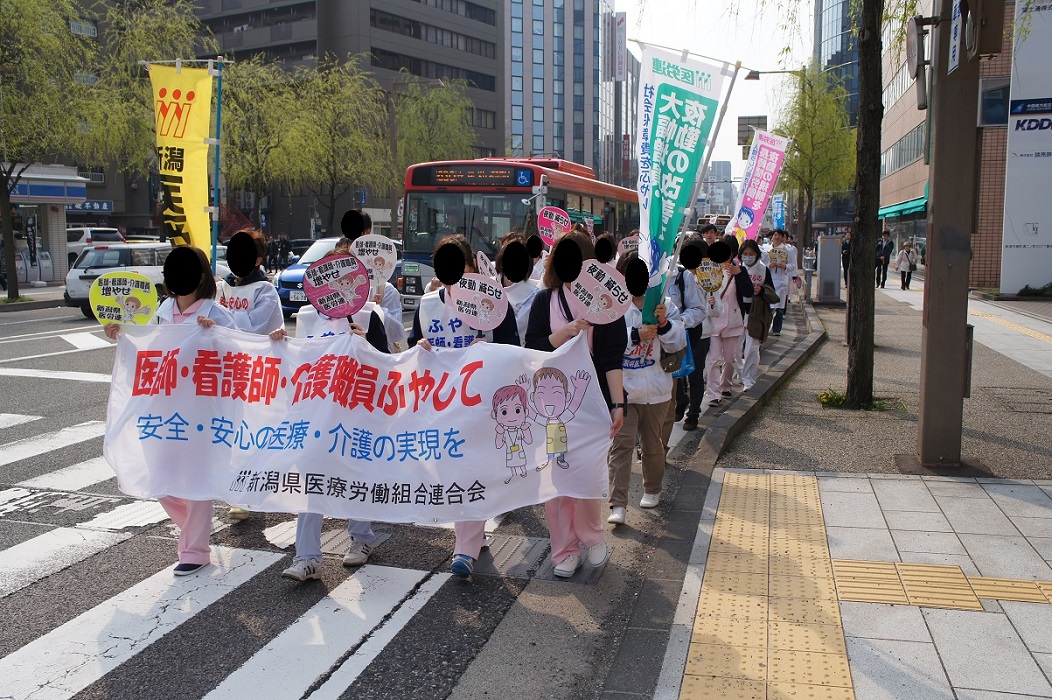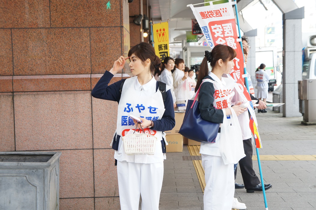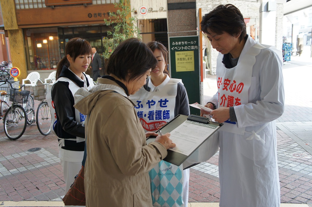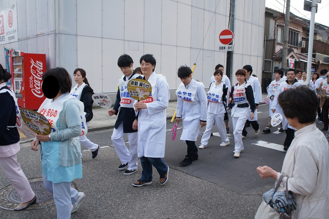 医師・看護師・介護士増員の署名を集め柾谷小路を行進する活動です