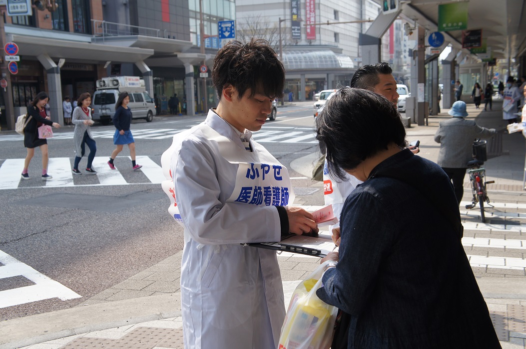 白衣の行動が古町十字路にて行われました。(2015/4/16)