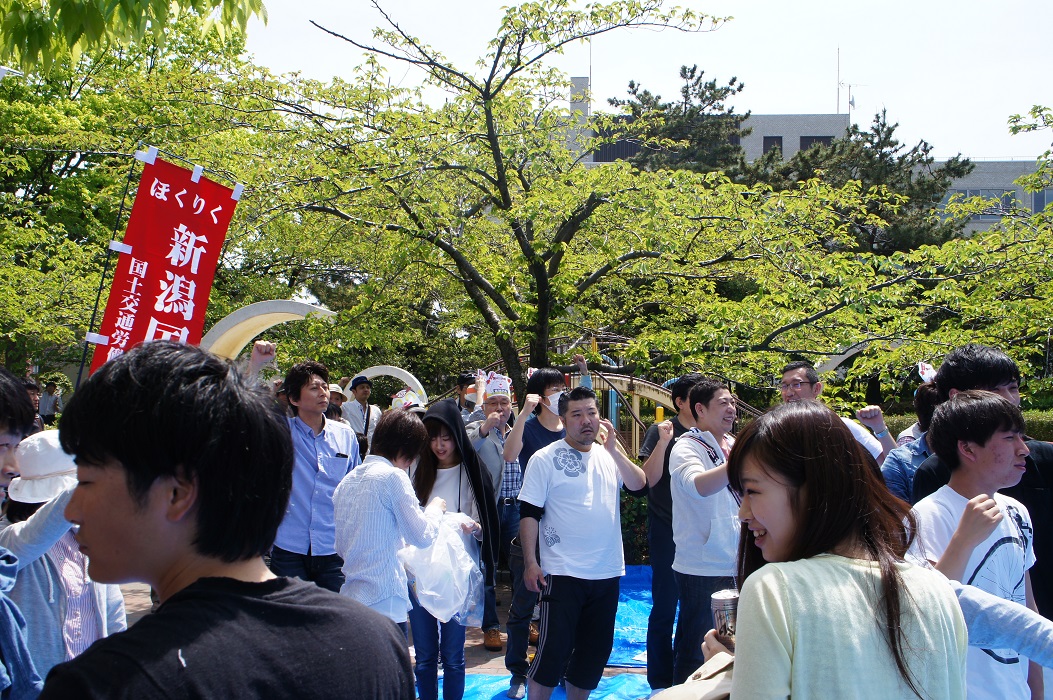 労働者の祭典メーデーが新潟市中央区西大畑公園にて行われました。