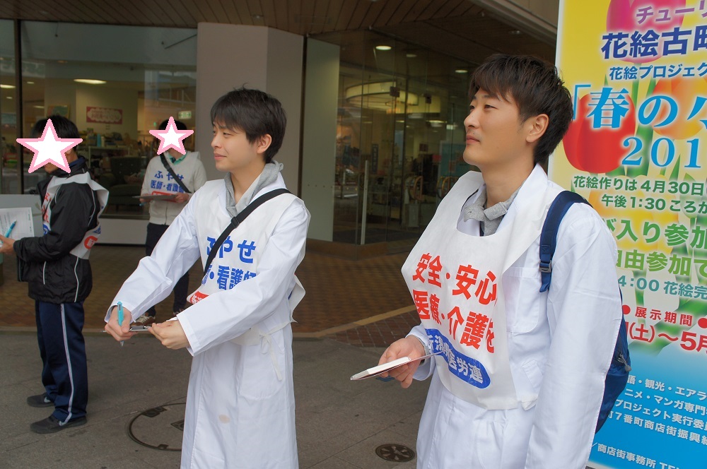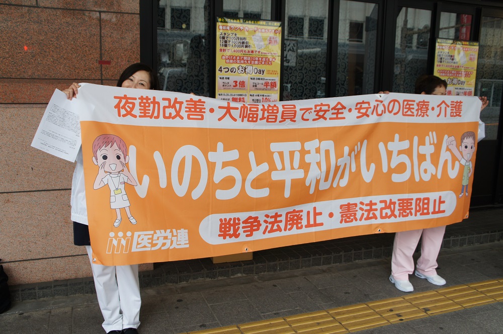 今年も医師・看護師増員や、夜勤改善を訴える署名活動を行いました。