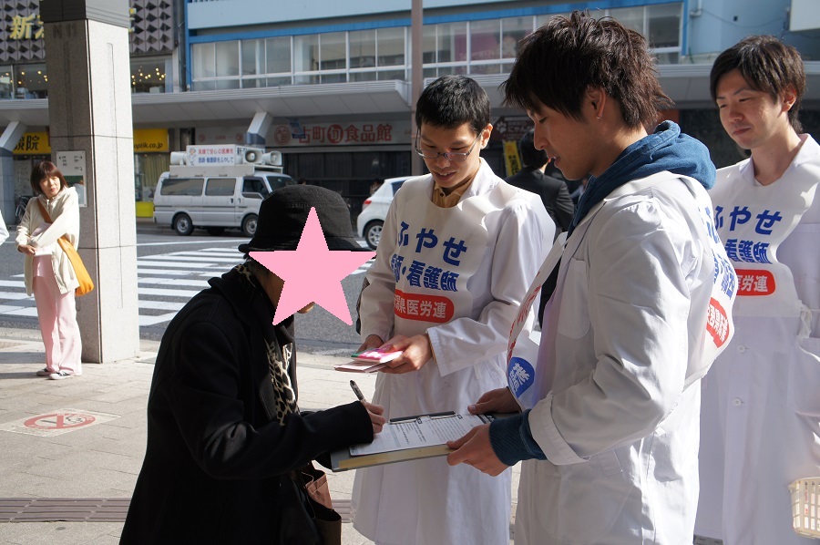 今年も医師・看護師増員や、夜勤改善を訴える署名活動を行いました。