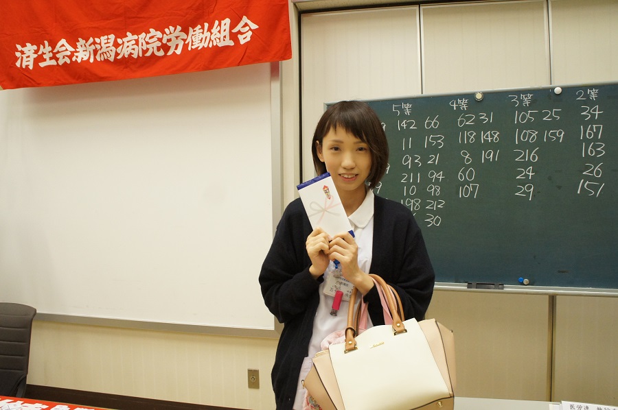 来賓は塩谷義夫様(医労連執行委員長)、坂詰明広様(医労連書記長)、菅井幸起様(全医労・西新潟病院支部)が出席されました。