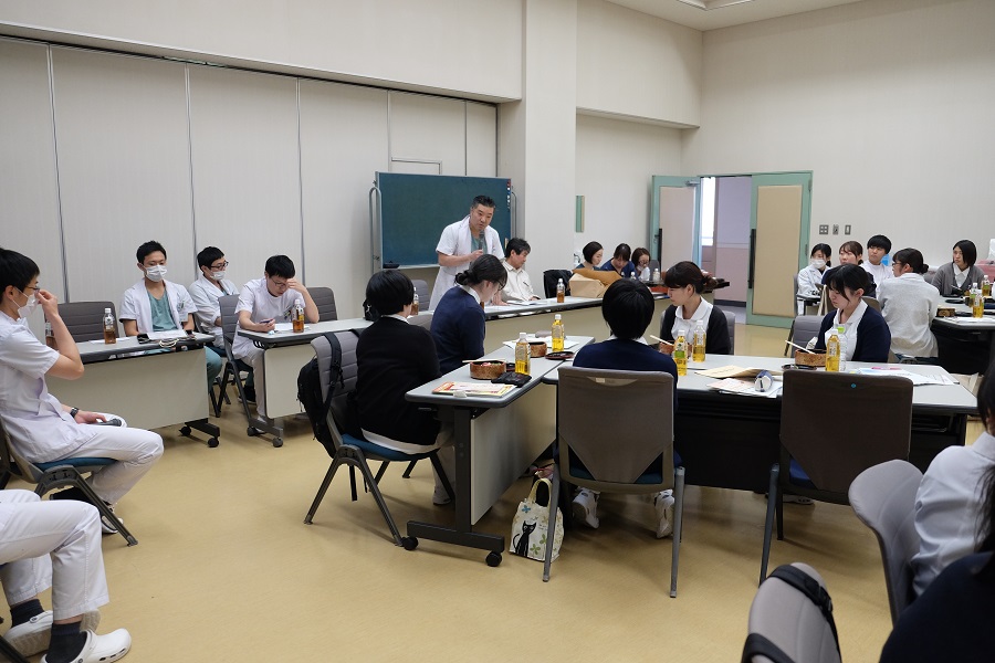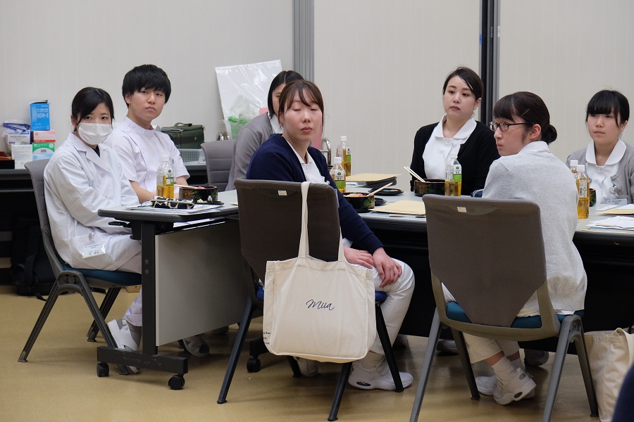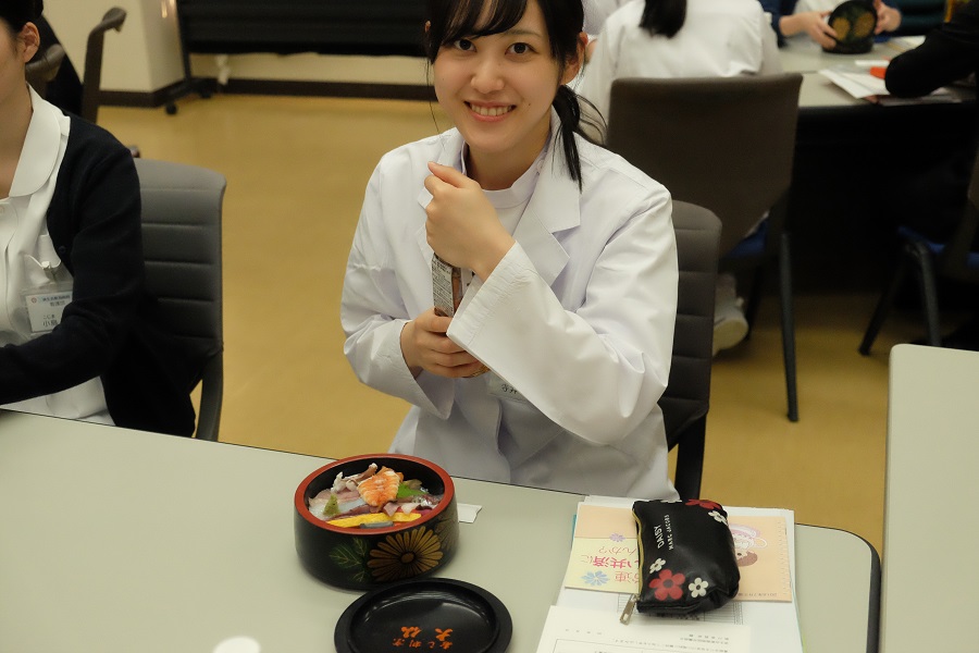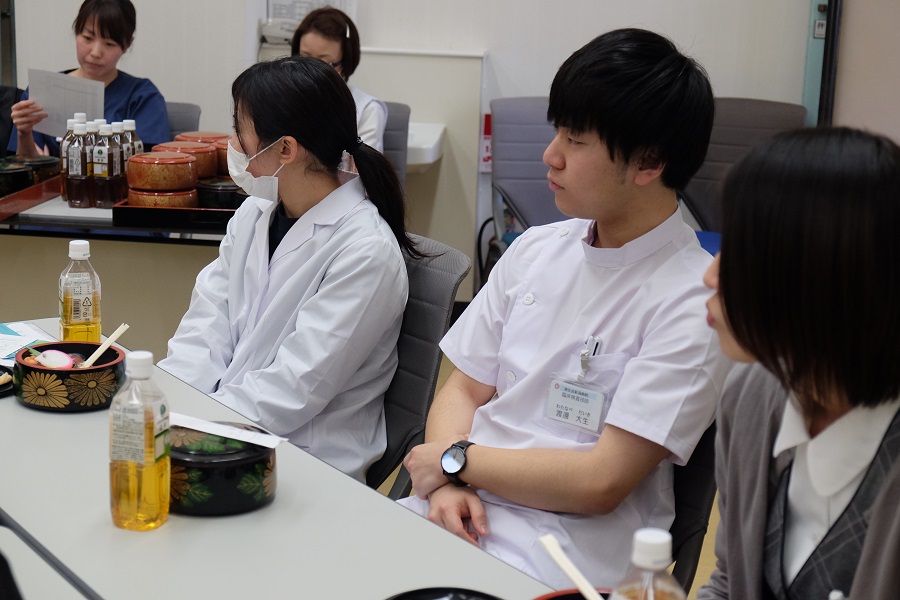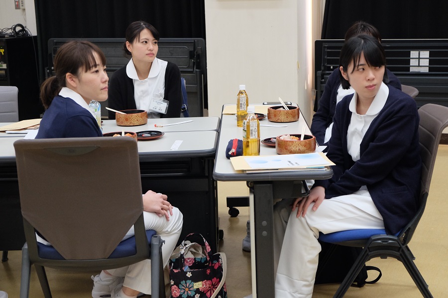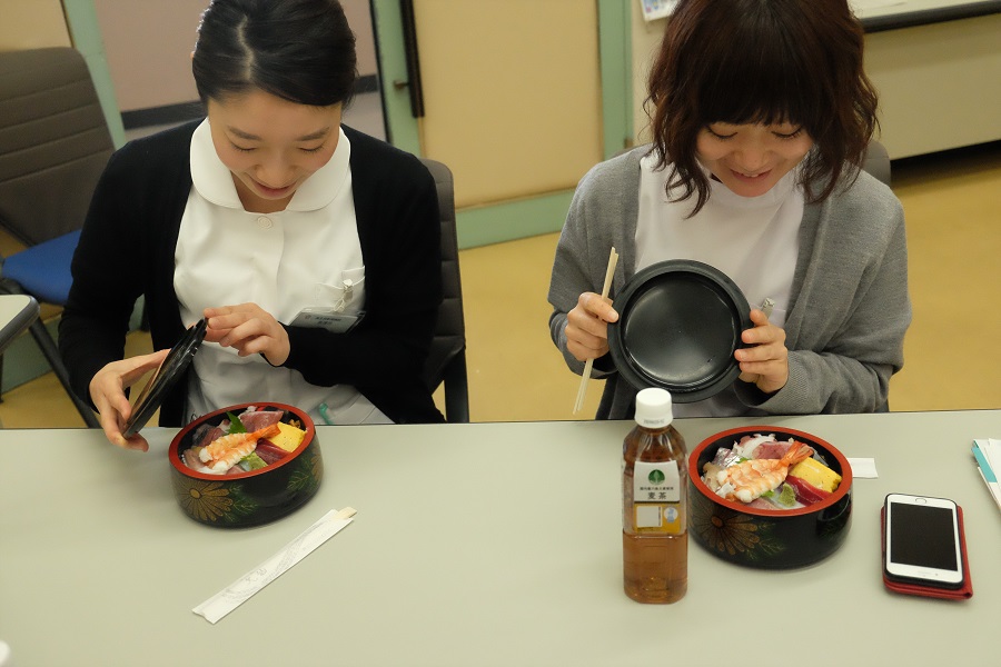 新入職員に対し、労働組合の説明会を行いました。参加者には毎年恒例のちらし寿司が振舞われました。