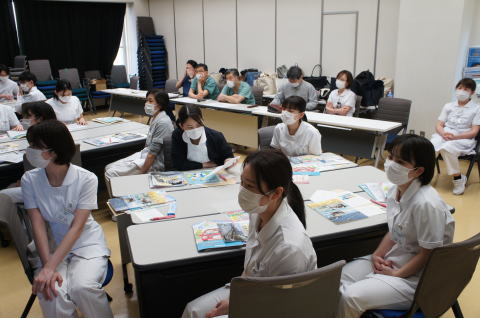 新入職員に対し、労働組合の説明会を行いました。参加者にはクオカードを配布しました。